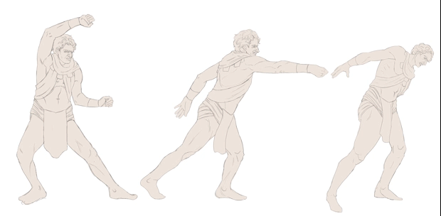 The other source of considerable headache is that the idle poses have to be ready to be skeleton-framed and animated later, so we have to think about that and draw 'behind' the future moving parts.